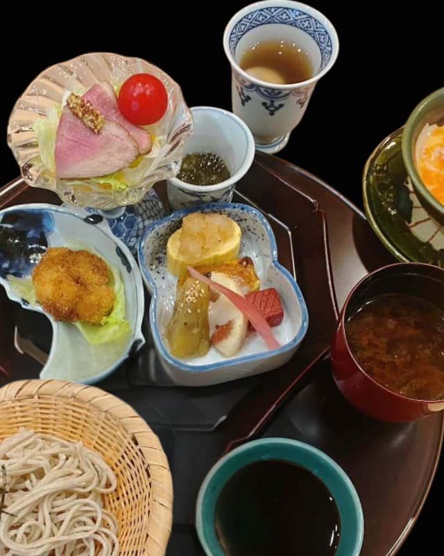 食事で出る十割の蕎麦がとても良い。コースで色々出してくれるのだが全てが蕎麦のフリと思えるくらい美味しかった。